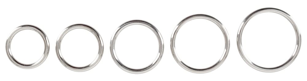 5-Delige penis / testikel ringenset Professional van Bad Kitty voor een sterke mannelijke prestatie met een opwindende look. Elk van de ringen in verschillende maten is naadloos vervaardigd en glad gepolijst uit robuust koolstofstaal. Kan verwarmd of gekoeld worden voor verfijnde temperatuursensaties.