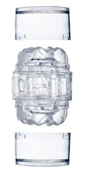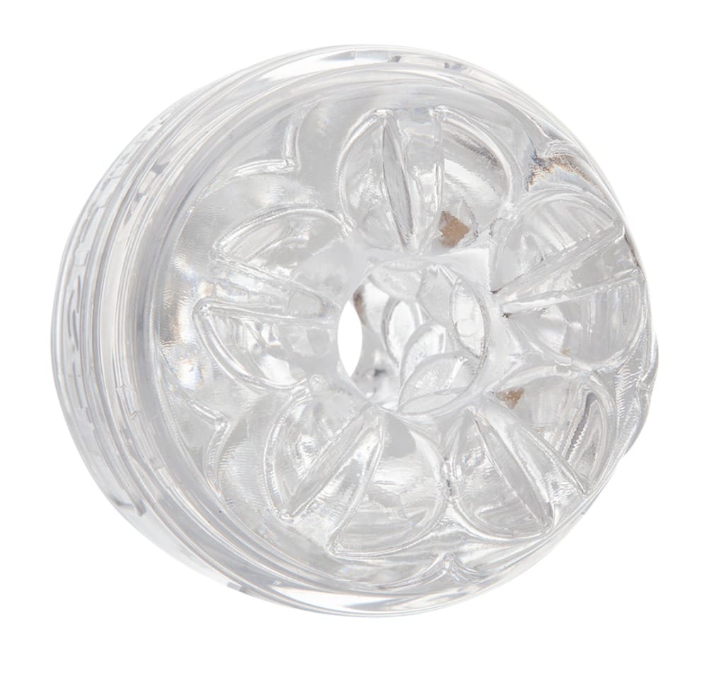 Transparante Quickshot Vantage masturbator van Fleshlight gemaakt van SuperSkin materiaal met een getextureerde binnenkant. Aan beide kanten open - perfect voor de langere penis. Slechts half zo groot als de andere Fleshlight masturbators: 8,8 cm lang, Ø 1,8 cm, rekbaar. Inclusief transparant opbergdoosje.